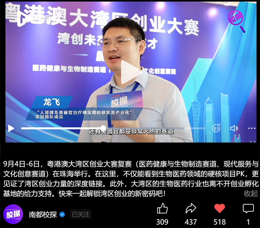 2025.9 参加粤港澳大湾区创业大赛,接受南方都市报视频媒体采访
